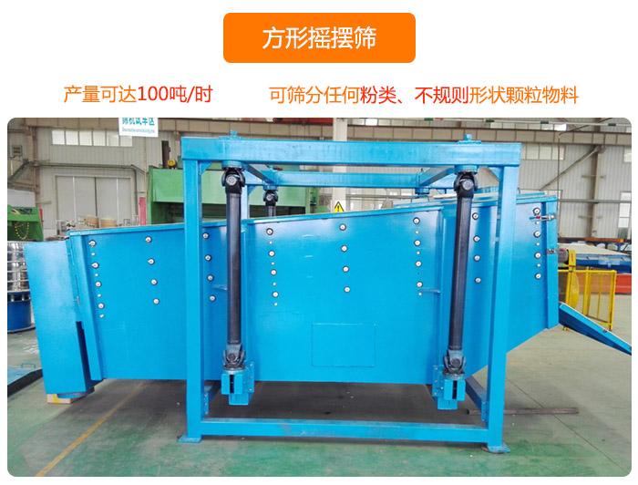3、方形搖擺篩特別適合圓柱狀、片狀等不規(guī)則物料,篩分精度高達(dá)90~95%,是普通振動篩的數(shù)倍或更高;